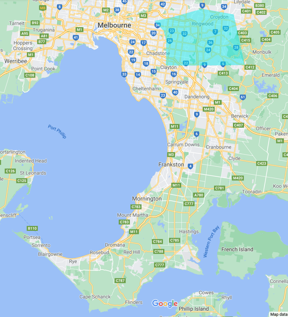 This service area contains a range of suburbs, including Ferntree Gully, Mount Waverley, Balwyn, Templestowe, Croydon and other suburbs within.